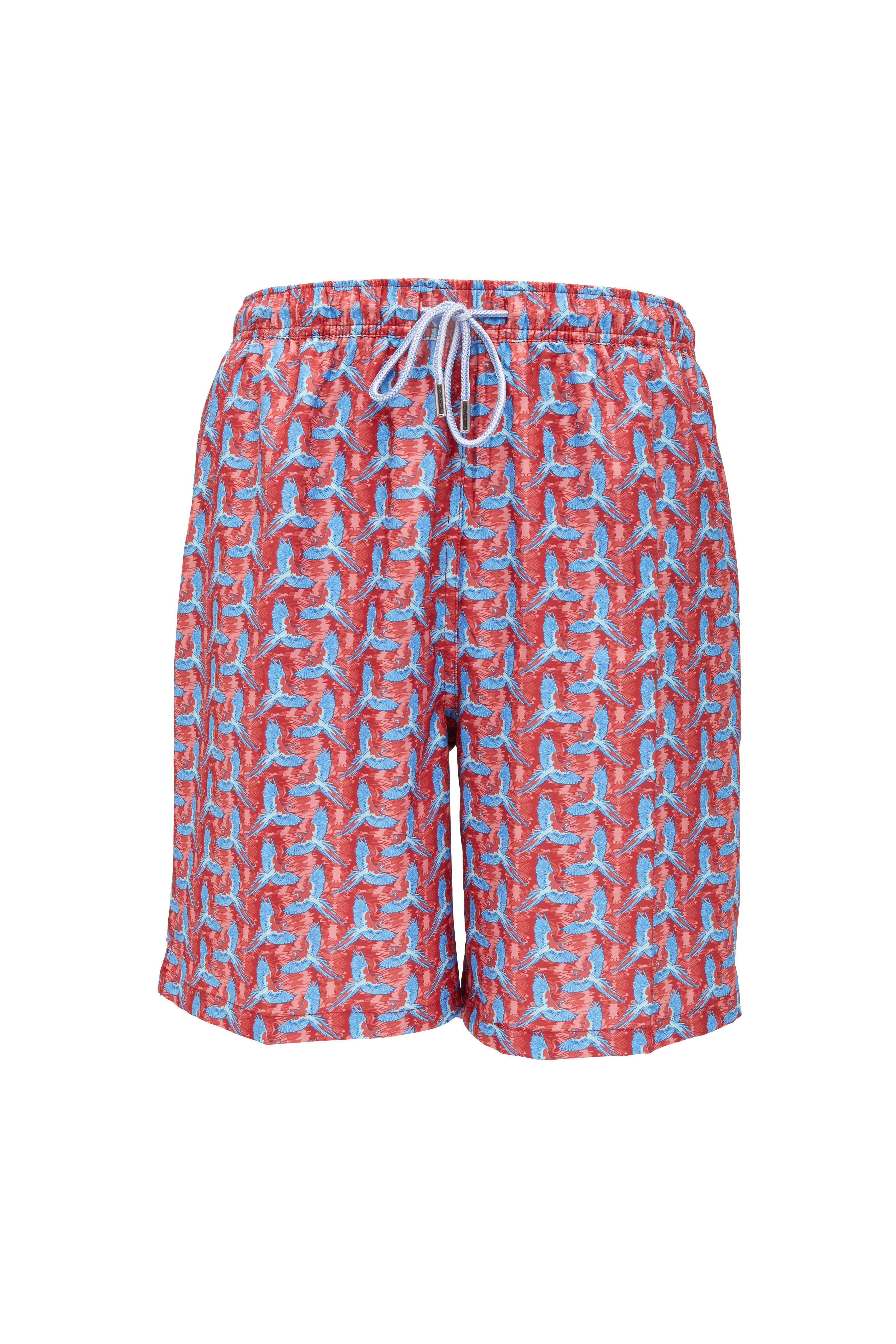 Peter Millar Red Birds Of Paradise Swim Trunks